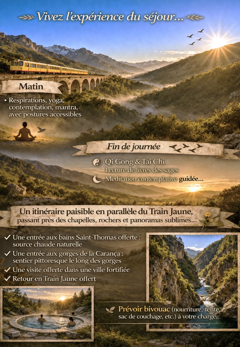 "Ce stage de à la montagne, dans ce petit havre de paix, permet à chacun de se purifier et connaître encore mieux son corps. Les différentes pratiques matinales ou en fin de journée nous apportent concentration et détachement à notre environnement habituel. Randonnées, baignade, contemplation: merci Mathieu, tu nous as fait vivre tout au long de ce séjour des expériences riches et intenses dans cette magnifique montagne tout en alliant la joie, l’humilité et la bienveillance. J’en suis ressortie pleine d’énergie positive, et je me sentais beaucoup mieux physiquement grâce aussi au régime alimentaire proposé. Une expérience à vivre!"